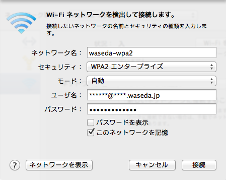 『パスワード』に【waseda-netのパスワード】