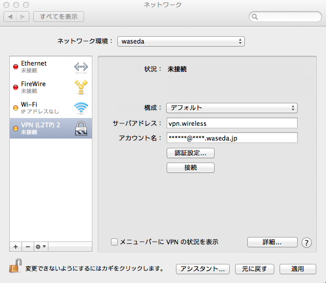 1. こちらでも"ネットワーク環境..."から新規作成。今度はwaseda-wpa2とでもして保存